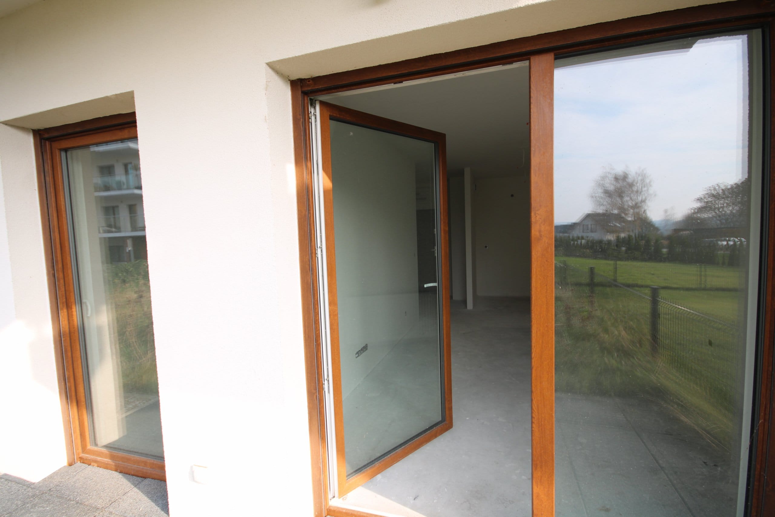 Położone na parterze, trzypiętrowego, nowoczesnego bloku. Są swoim odbiciem lustrzanym, usytuowane obok siebie.. Każdy z tarasem, ogródkiem oraz miejscem garażowym.